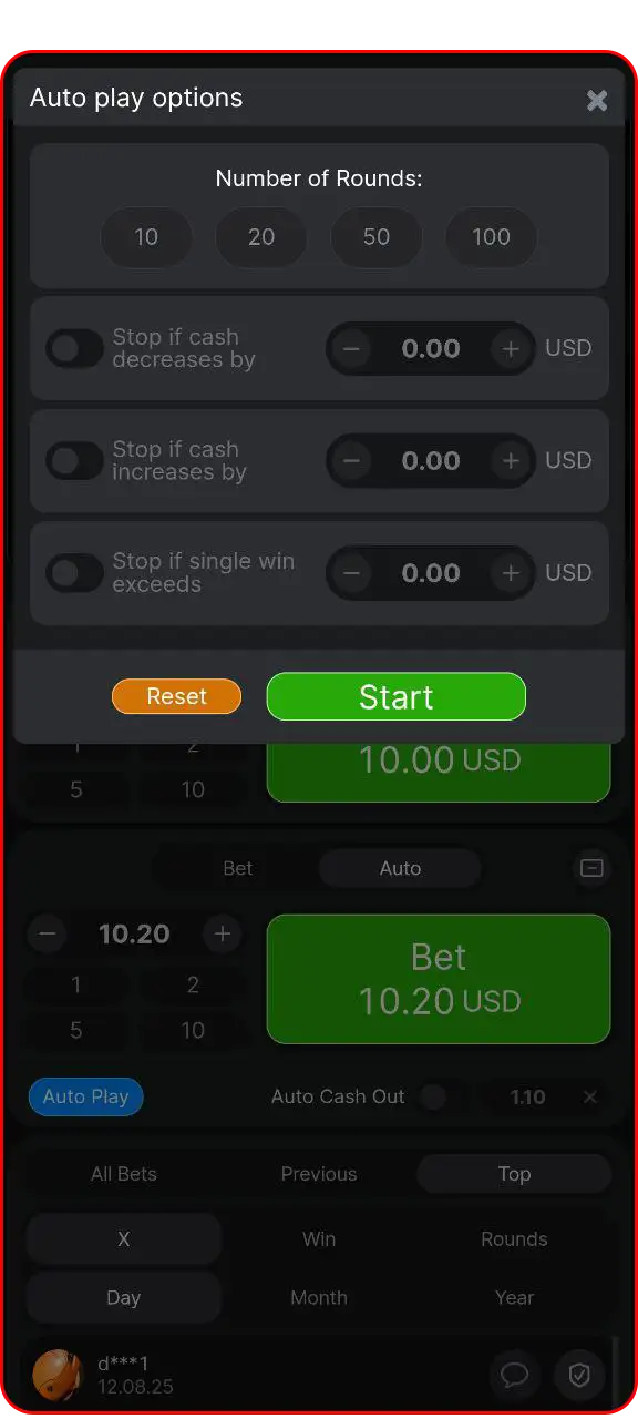 Grabs your winnings automatically when the multiplier hits your chosen number
